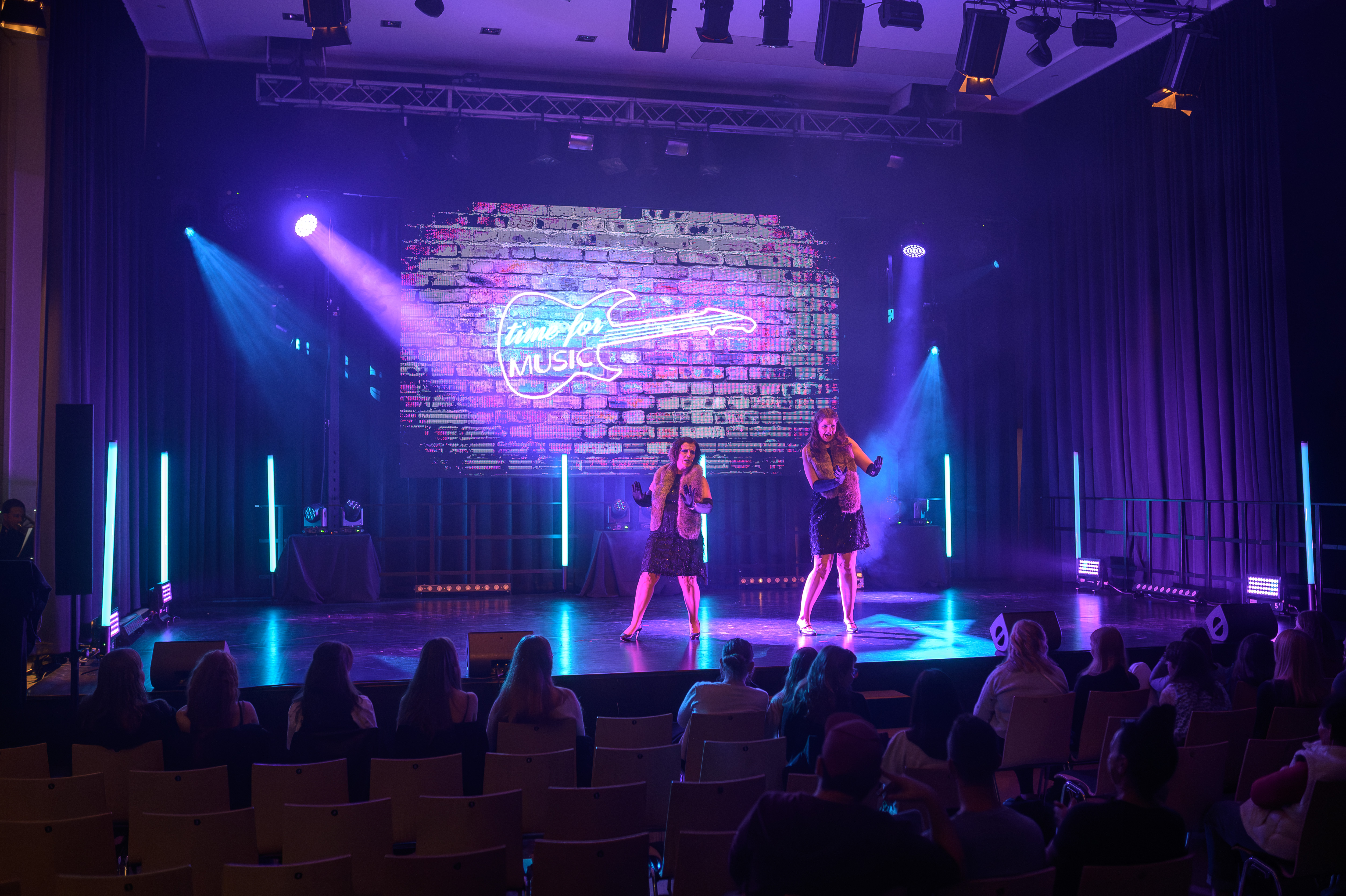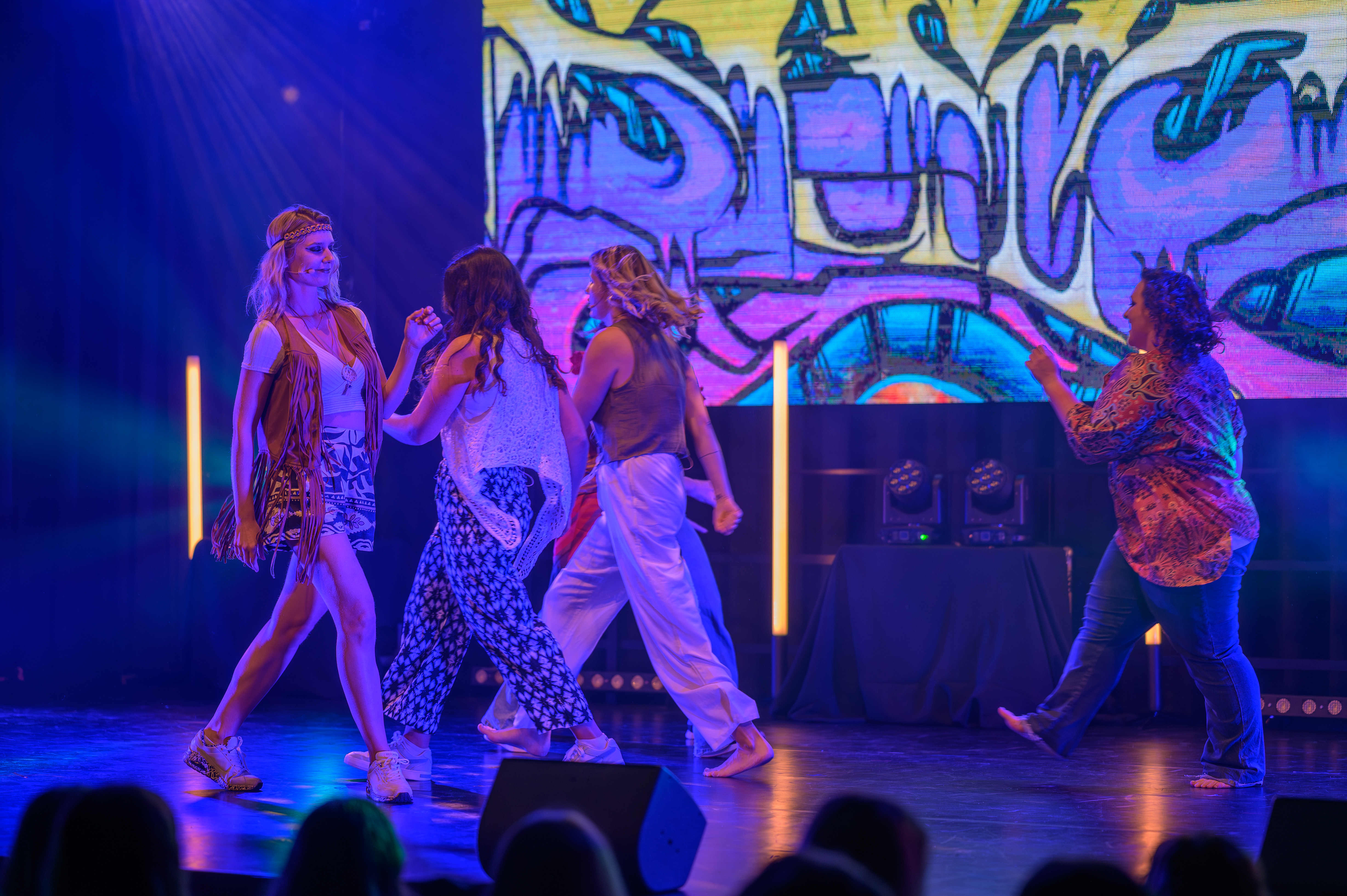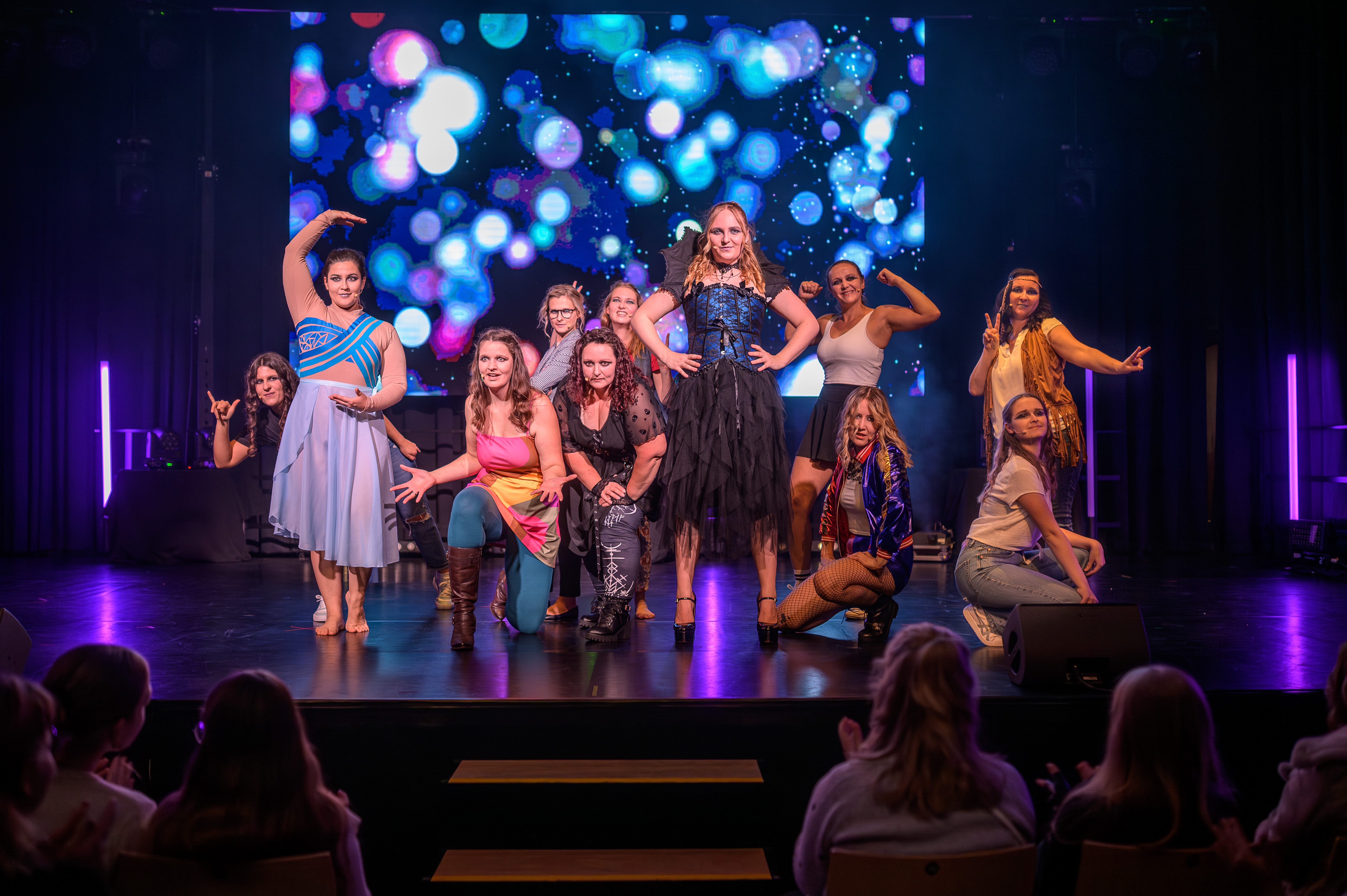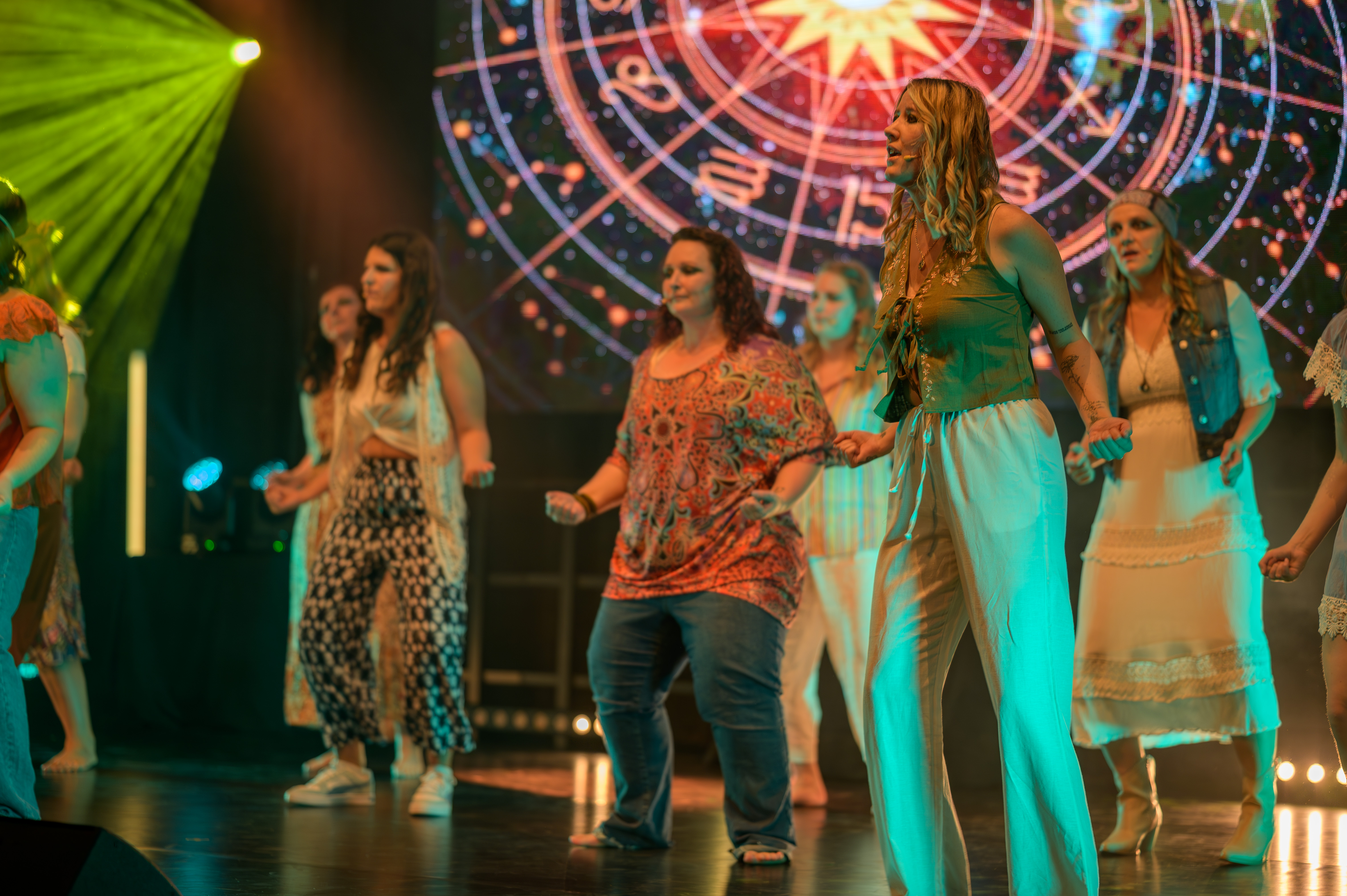 Akt II beginnt mit der tragischen Liebe von Romeo und Julia – ein musikalisches Bild von Konflikt, Hoffnung und der Kraft junger Gefühle. Es folgt die Ära des Wassermanns mit HAIR, in der eine Generation auf die Bühne tritt, die für Frieden, Freiheit und gesellschaftlichen Wandel kämpft. Mit einem Augenzwinkern bringt Sister Act Glaube, Humor und Gemeinschaft ins Spiel – und zeigt, wie selbst die dunkelsten Orte durch Zusammenhalt erhellt werden können. Den emotionalen Höhepunkt bildet The Greatest Showman, dessen Songs Individualität, Mut und Selbstakzeptanz feiern. Das große Finale vereint Falcos „Leb deinen Traum“ und Rent mit „Seasons of Love“ – ein musikalisches Bekenntnis zur Liebe, zum Leben und zur Kraft der Gemeinschaft.